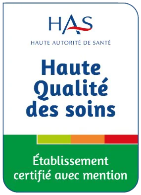 La certification est une procédure d’évaluation externe à l’établissement de soins, conduite par la haute autorité de santé (HAS), indépendante de l’établissement ou des organismes de tutelles. Elle évalue l’ensemble du fonctionnement et des pratiques pour assurer la sécurité et la qualité des soins que nous vous devons. Les indicateurs qualité annuels exigés par le ministère de la Santé sont disponibles et consultables à l’entrée de l’établissement. Ils sont régulièrement mis à jour et traduisent les engagements que chaque professionnel met en œuvre au quotidien pour votre sécurité et votre prise en charge.